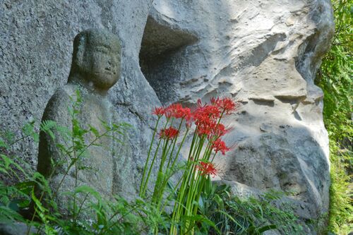 萩を見にいったんだけど、彼岸花もいたるところで咲いていたのでアップ。ただ、自分で撮った写真を見たら、若さがなく、私の人生にも秋の気配を感じた……。 浄光明寺の石仏わきに咲いていた彼岸花。イギリスに行ったときにガーデニングショップで大仏の頭とか…